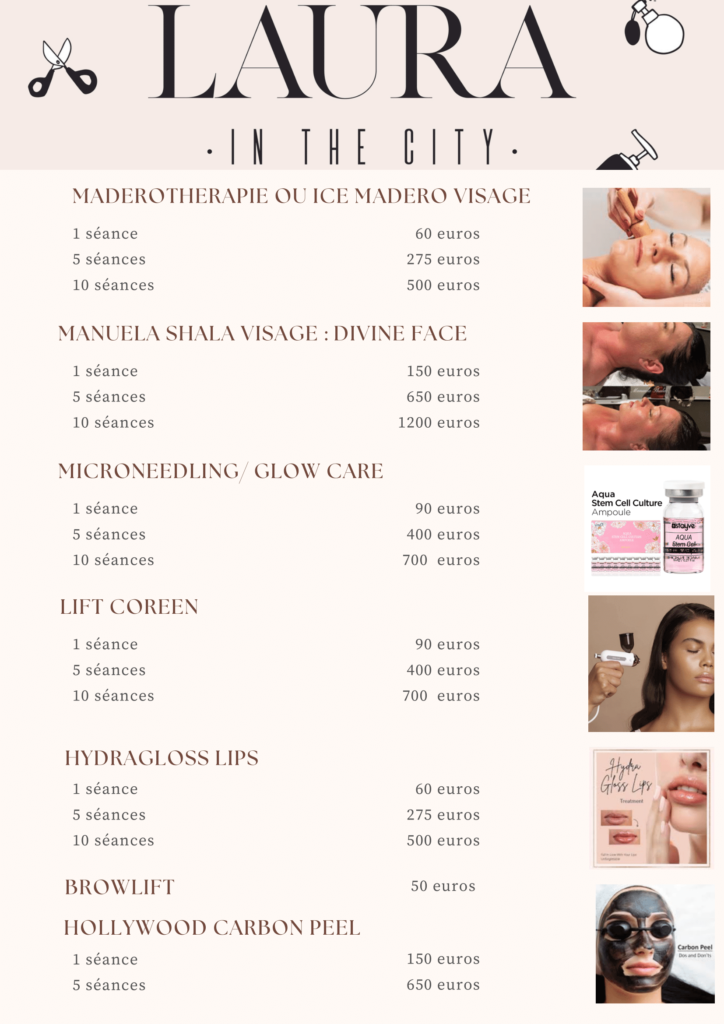 Tarifs soins du corps chez Laura in the City à Luxembourg